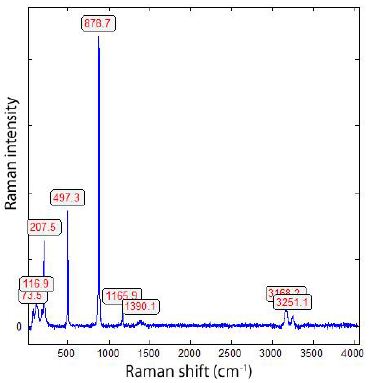 Figure 1: Raman spectrum of boric acid [H3BO3] using nB and the 532 nm Raman excitation in the Raman range from 50 to 4000 cm-1.