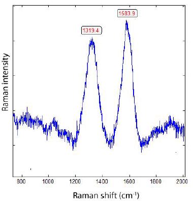 Figure 2: Raman spectrum of diamond spheres (Figure 1) dissolved (using hydrochloric acid) out of the grey cast iron.