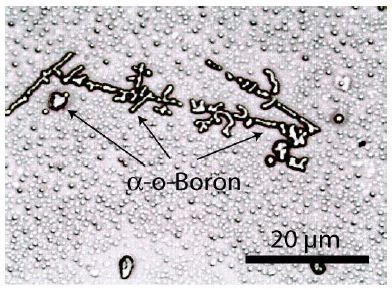 Table 1 shows the results of the α-boron extracted from grey cast iron. The colorless spheres of boron have a diameter of 2 µm (Table 1 and Figure 4).
