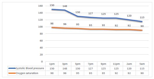 Figure 2: Blood pressure and oxygen saturation alteration with time.