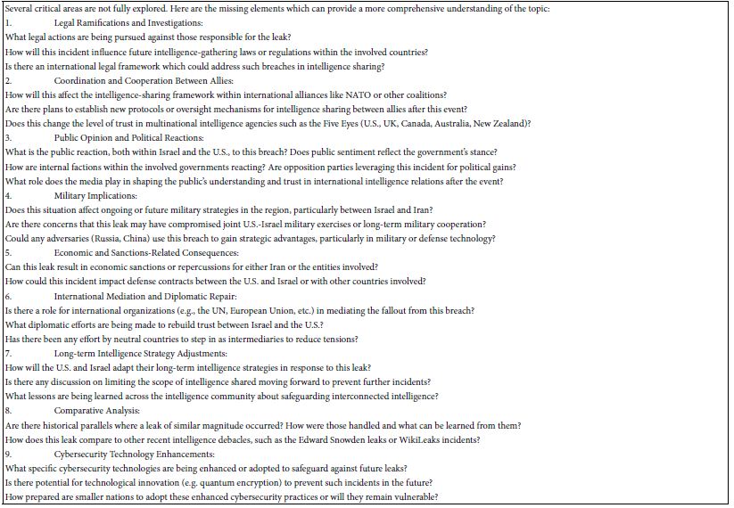 Critical thinking about “what may be missing” is a powerful tool for understanding the present and envisioning future possibilities and innovation (see Table 6). It involves actively investigating gaps in information, logic, or assumptions, challenging superficial answers and pushing deeper inquiry. Encouraging critical thinking cultivates an environment of inquiry, encouraging individuals to question, probe, and evaluate unexamined factors which could change their understanding of the issue. The real value of this approach lies in its application to real-world situations, such as potential betrayal in international relations, engineering and design flaws, and storytelling plot points. By honing the practice of identifying what is missing, individuals prime themselves to think more flexibly, remaining open to new interpretations and information under pressure. The “what is missing” mindset not only critiques the present but also lays the foundation for future advancements, which is the heart of innovation. To drive this process effectively among others, it is essential that the environment is safe for inquiry and wrong answers. Mistakes need to be seen as part of the process of critical reflection and innovation, rather than failures. The “what is missing” exercise not only improves critical thinking but also builds a tolerance for ambiguity—a vital skill in the information age.